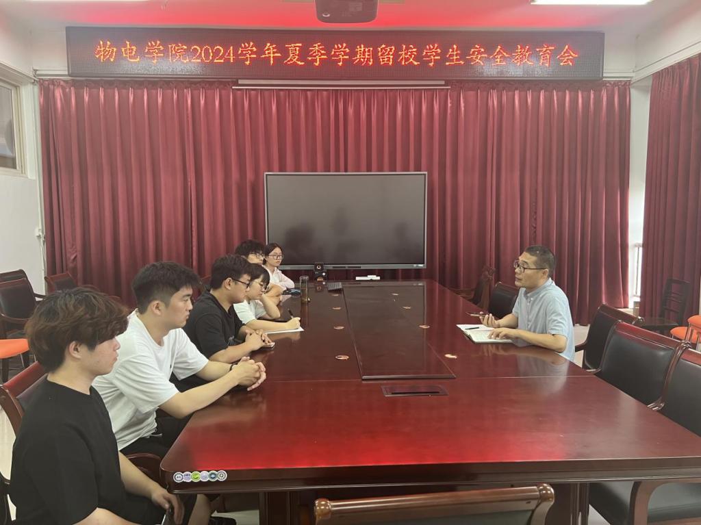 为强化留校学生的安全意识和自我保护能力,我院于7月12日在2号实验楼3楼会议室召开夏季学期安全教育会议。本次会议由学院副书记刘自范主持,学工办马亚琼老师和全体留校同学参加。