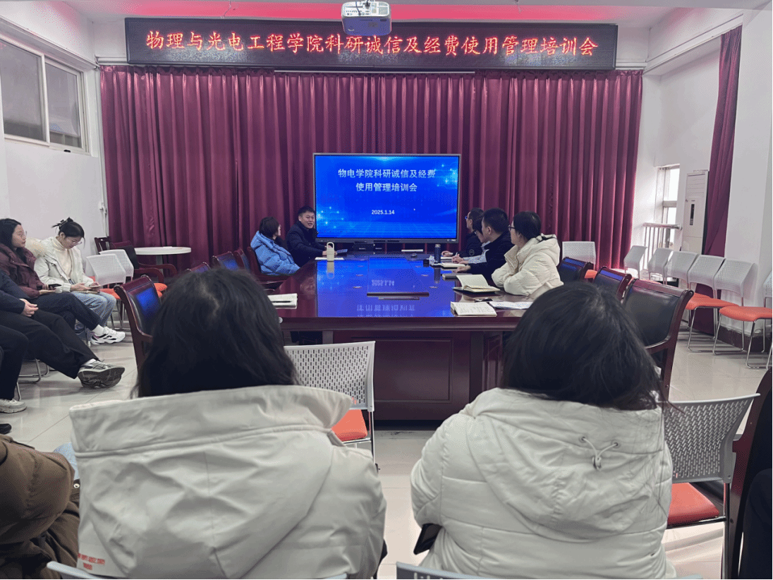 学风和科研诚信建设,我院于1月14日上午在2号实验楼341会议室召开科研诚信及经费使用管理培训会,学院全体教职工参会,会议由方莉俐执行院长主持,学术副院长王建军做培训讲座。