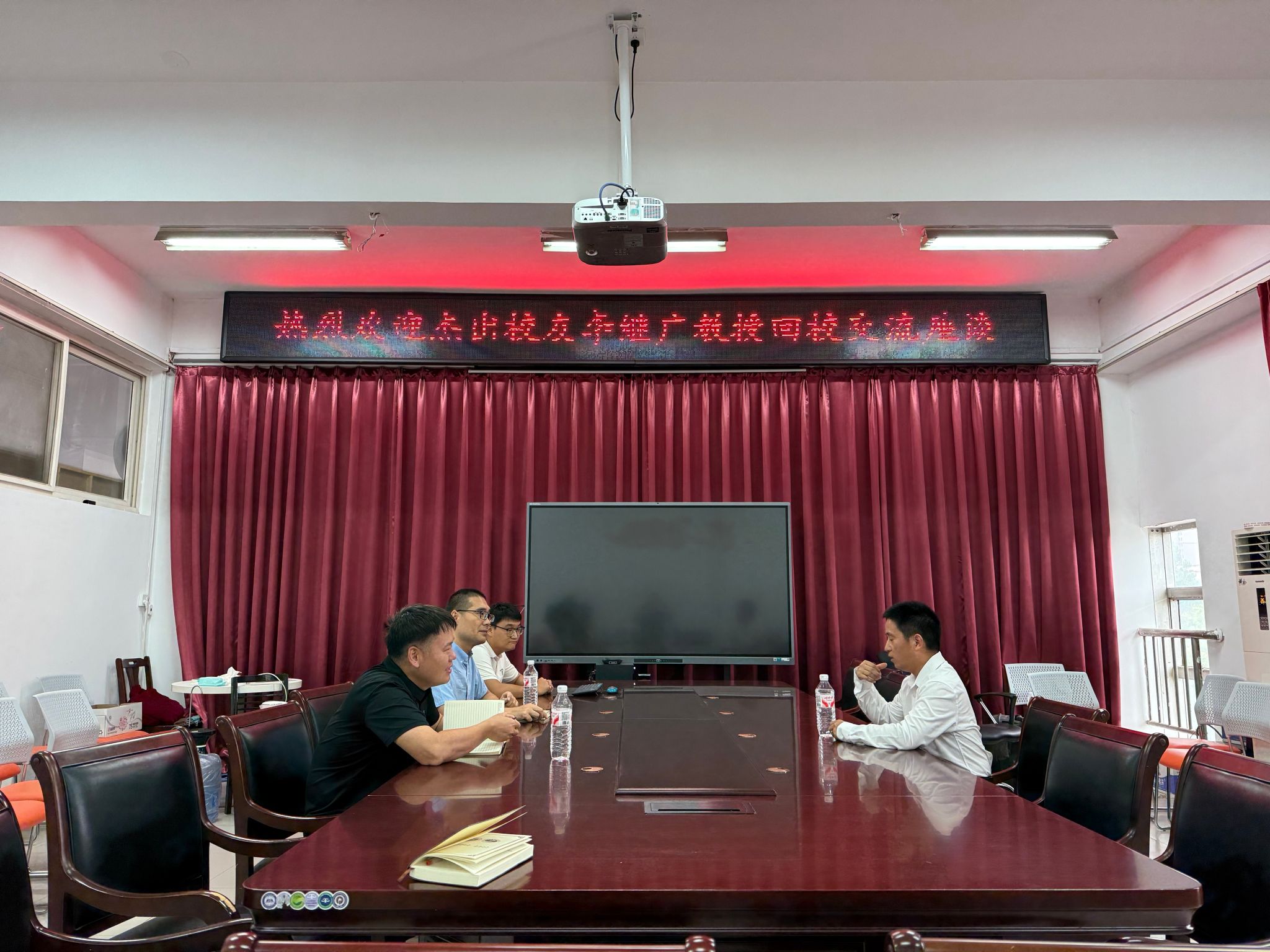 迎来2008级校友、西安航空学院教授、陕西华兴通盛航空科技有限公司创始人李继广回校交流。党总支副书记刘自范、学术副院长王建军、办公室副主任张坤及教师代表李晨辉参加了交流会。