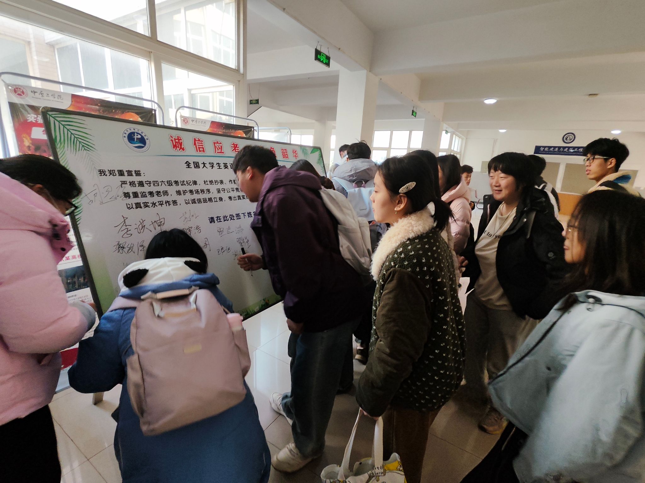 近日举办了“诚信应考 不负韶华”主题宣誓签名活动。学院通过制作诚信考试宣誓展板,并面向全院学生发出签名倡议,将诚信教育融入日常、落在实处,引导学院学生以端正态度迎接各项考试。