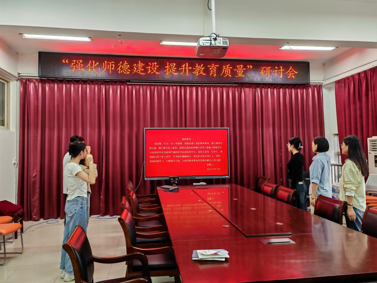 随后,新入职的六位青年教师在大家的见证下郑重宣誓,他们承诺,作为新人将以誓言为指引,全心全意投入到大学教师这一神圣职业中,为培养更多优秀人才、推动高等教育事业的发展,贡献自己的全部热情、智慧与力量。