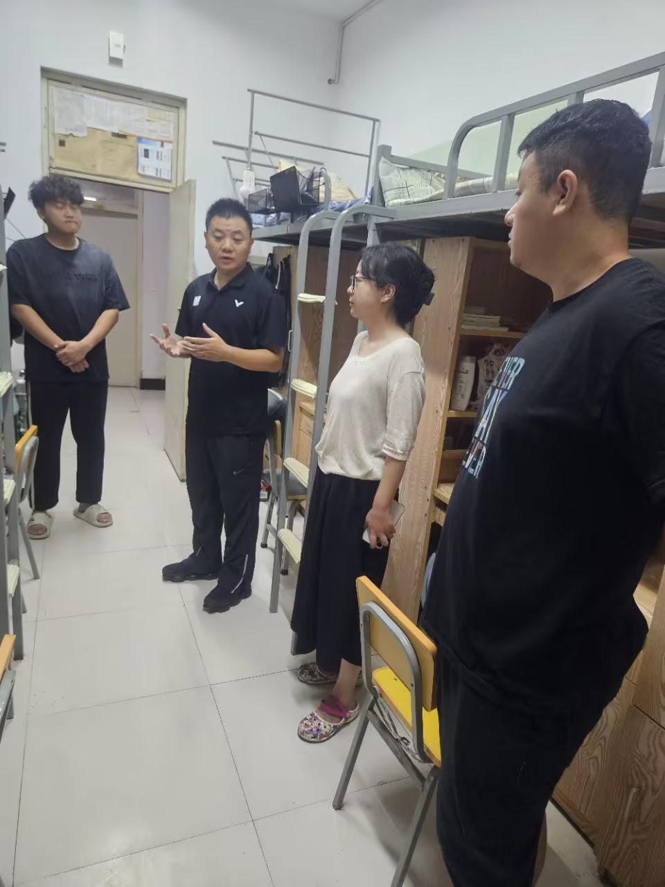 党总支书记张海斌、副书记刘自范与学工办主任马亚琼于8月5日走访宿舍和自习室,看望夏季学期留校学生。